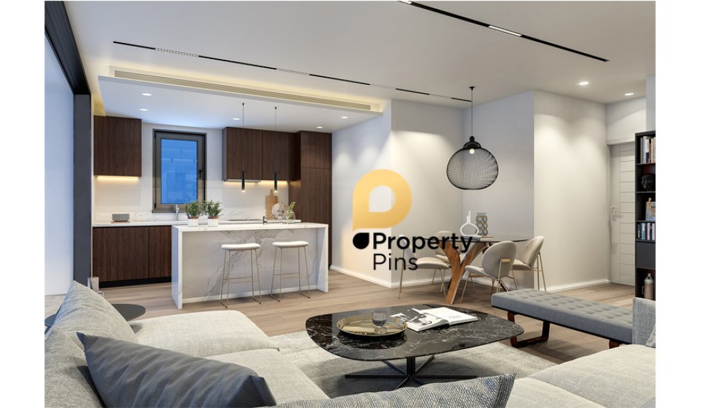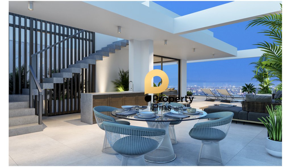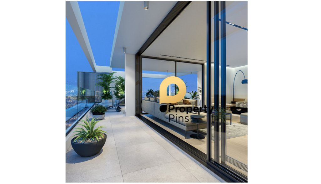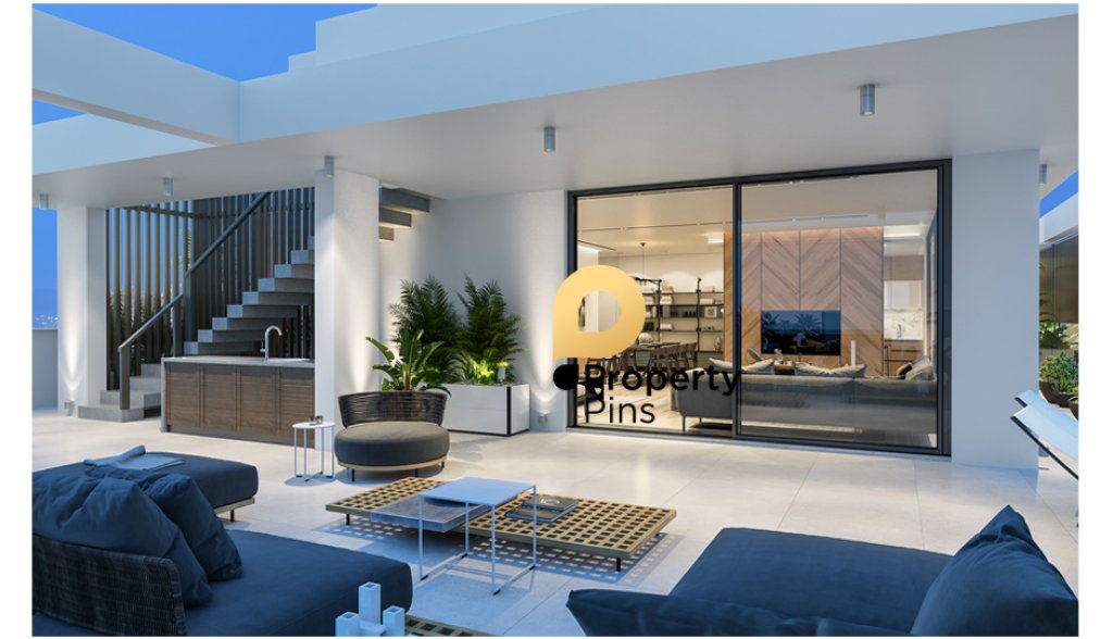 The apartment has a unique architectural design with contemporary architectural elements. Internally, the apartment form offers spacious living spaces with large sliding doors leading to large terraces, complete installation of underfloor high efficiency heat pump heating system and provision works for the installation of A/C units of cold and hot air in all the rooms, complete installation of solar heaters. The apartment offers security system, covered parking space and storage area and video door entry phone.