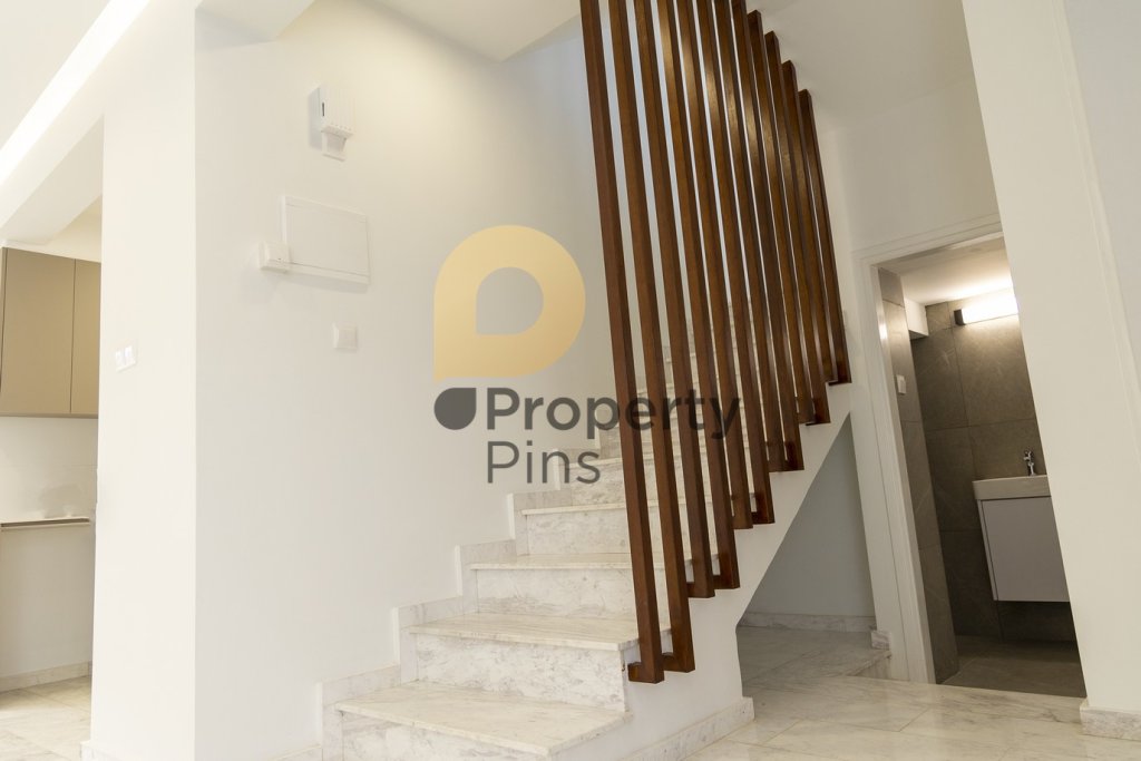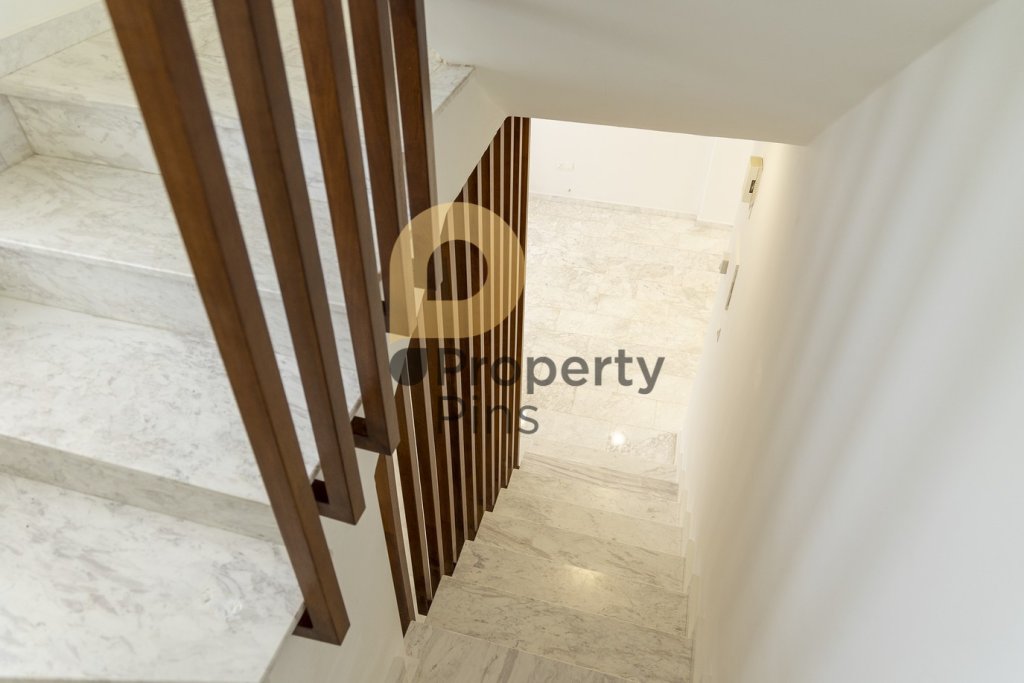 It has 3 bedrooms, 2 WC, a rooftop balcony, Marble Kitchen Benchtop, undermount Sink, Midea Oven, Hood and cooking stove. Bedrooms have Laminate wooden Flooring and stairs and Ground floor has Marble. Modern Iroco wooden staircase railings, and all balconies with Glass railings to allow Sea view wherever you practically stand in the house.